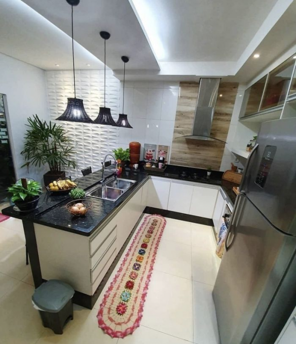 Suka dengan dapur letter U nya yang bernuansa hitam putih.