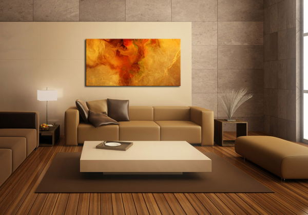 Dalam ruang tamu, desain interior abstrak yang hangat dapat menciptakan suasana yang menyambut bagi tamu-tamu Anda. Gunakan furnitur yang mengundang dan dekorasi dinding dengan lukisan-lukisan abstrak.