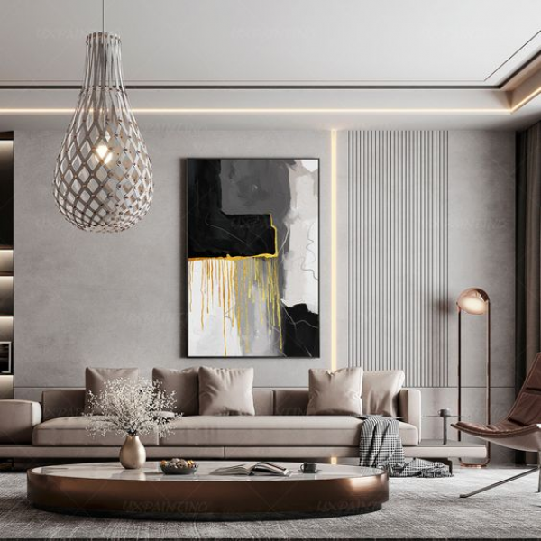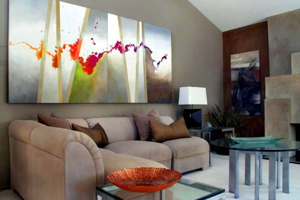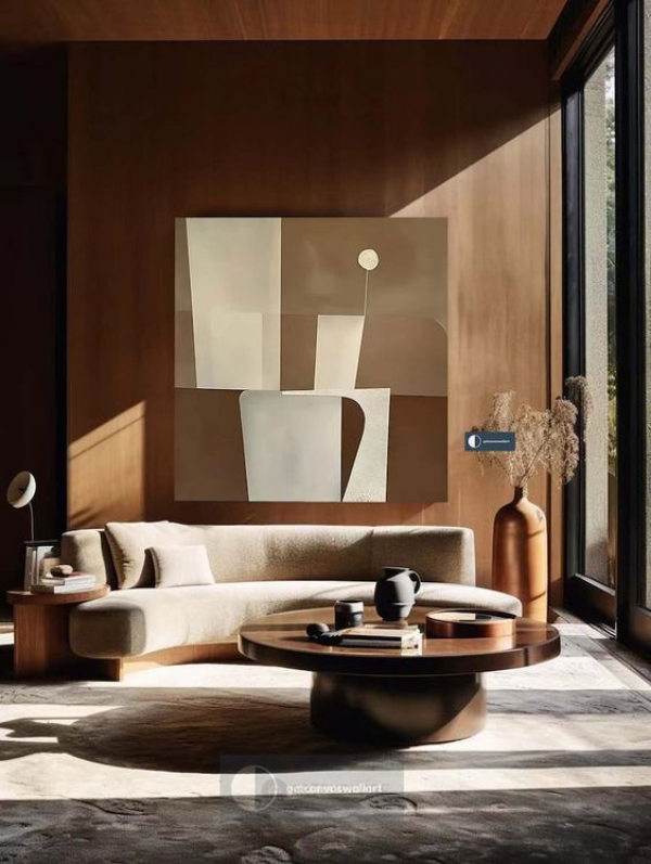 Integrasikan karya seni abstrak ke dalam desain interior. Lukisan atau patung abstrak dapat menjadi titik fokus yang menarik perhatian dan memberikan nuansa kreatif serta hangat.