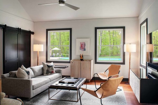 Interior ruang tamu dengan pintu geser nya yang menarik.