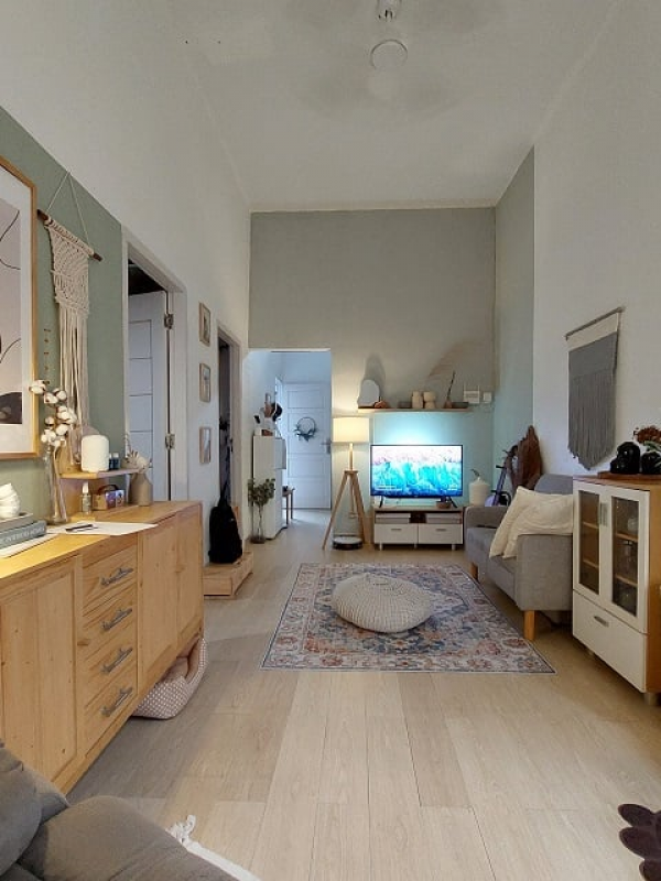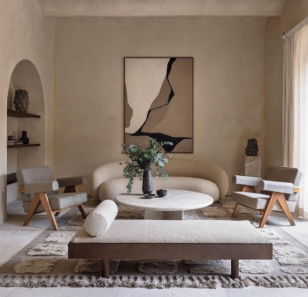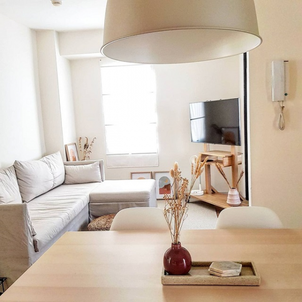 Interior ruang tamu ala Japandi yang hangat ya guys.