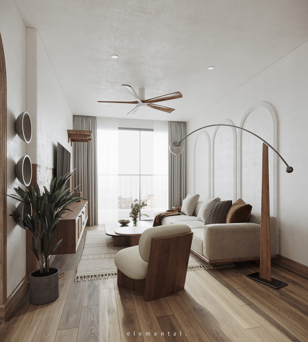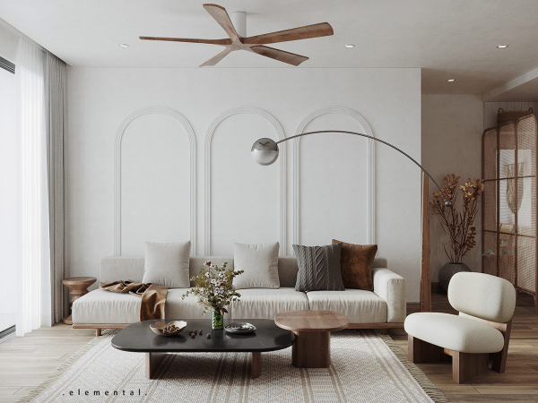 - - Warna alami dan kayu: Desain interior ala Japandi cenderung menggunakan warna alami seperti putih, abu-abu, beige, dan coklat. Untuk menambahkan sentuhan Jepang, gunakan furnitur dan aksesoris dari kayu seperti meja kopi, kursi, dan rak buku.