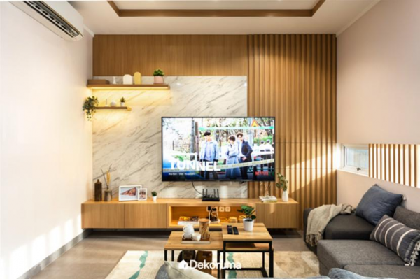 Interior ruang tamu ala Japandi style yang sederhana ya.