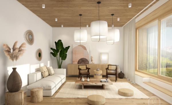 - - Furnitur minimalis: Desain interior Skandinavia terkenal dengan furnitur minimalis dan sederhana. Anda dapat menggabungkan furnitur Skandinavia dengan aksen Jepang seperti meja rendah dan lampu gantung bambu untuk menciptakan desain interior ala Japandi.