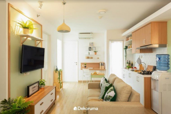 Interior Japandi minimalis dengan tanaman hijaunya.