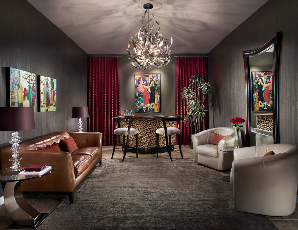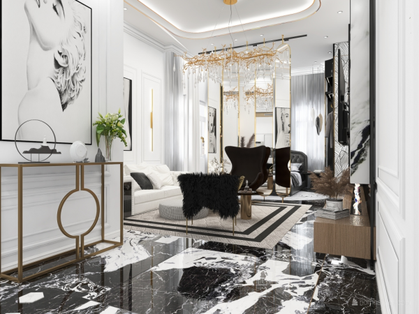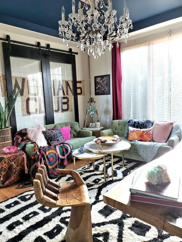 • Ketiga, gunakan aksesori glamor seperti lampu gantung kristal, patung, atau lukisan berwarna-warni.