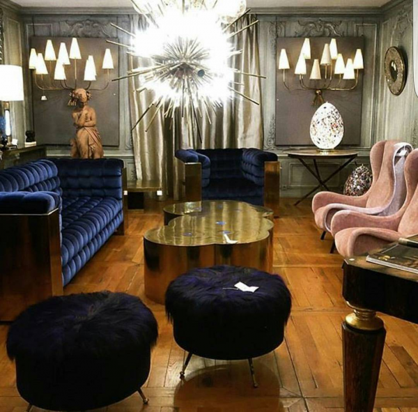 Ruang tamu Hollywood glam yang menarik ya guys.