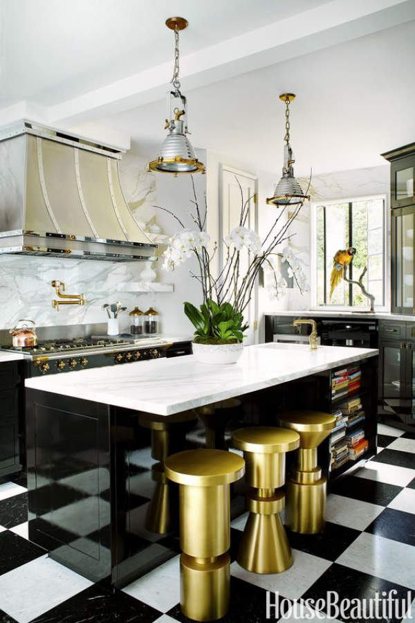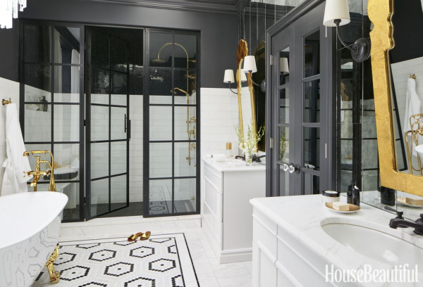Warna-warna cerah dapat membuat ruangan terlihat lebih luas dan bersih.Untuk mendapatkan efek Hollywood Glam, gunakan warna hitam untuk dinding bagian dalam dan warna putih untuk plafon.