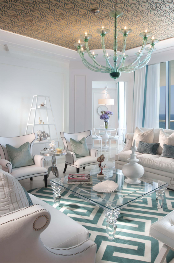 Ruang tamu Hollywood glam yang tampil dengan kemewahannya.