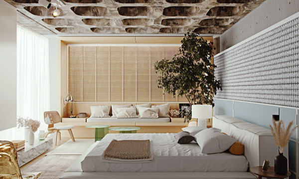 Manfaatkan sebaik mungkin cahaya matahari dengan jendela besar atau pintu geser kaca. Cahaya alami tidak hanya membuat kamar terasa lebih luas, tetapi juga memberikan nuansa hangat.