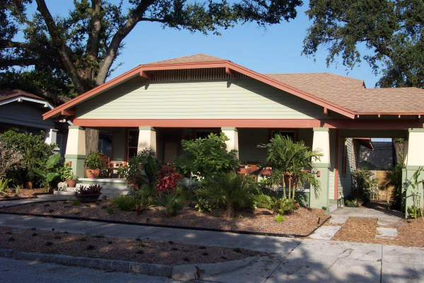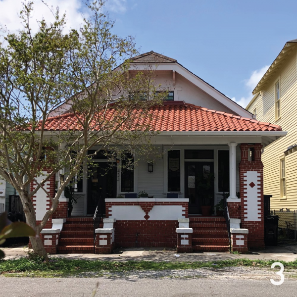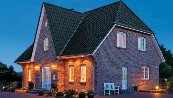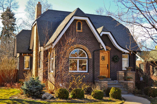 Rumah atap jerkinhead dengan dindng bata eksposnya.