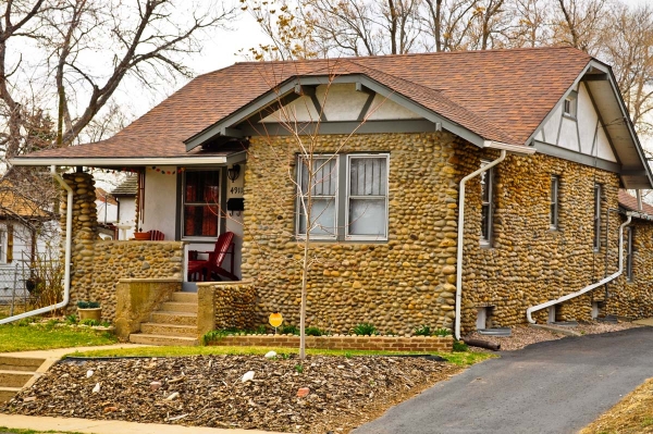 Rumah atap jerkinhead dengan dinding batu alamnya yang cantik.