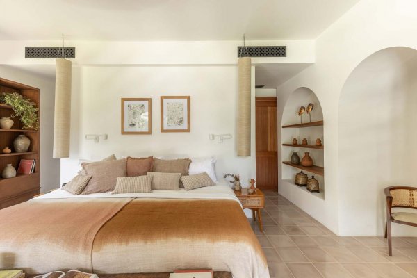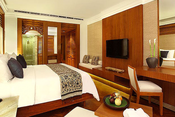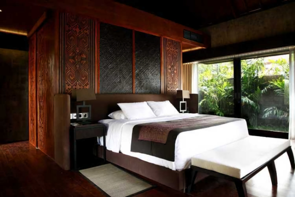 Desain interior kamar nuansa Bali dengan kolam renang nya.