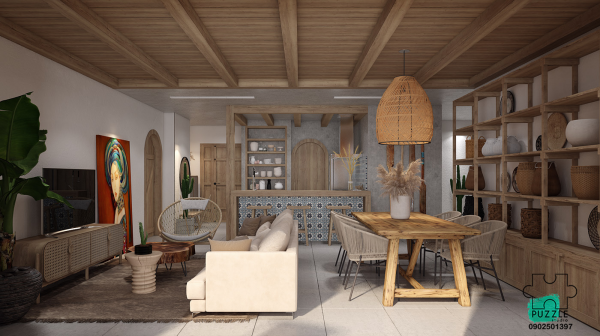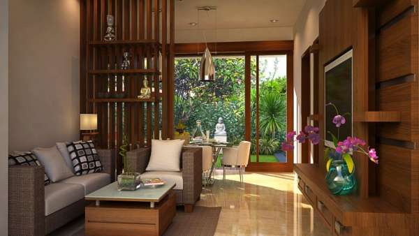Interior rumah nuansa Bali dengan furniture minimalis nya.