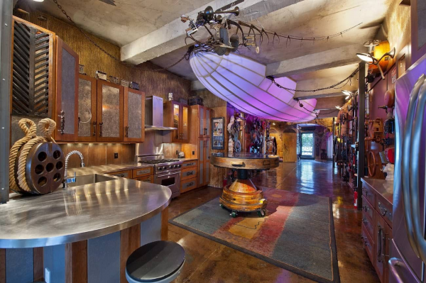 Interior Rumah Bergaya Steampunk - Steampunk adalah gaya yang menonjolkan estetika Victorian dan gaya perangkat keras komersial abad ke-19, dan sering diterapkan dalam bentuk fiksi ilmiah dan budaya populer. Steampunk juga dapat diterapkan dalam gaya arsitektur dan desain interior, dengan menggunakan material-material yang ada pada era tersebut.