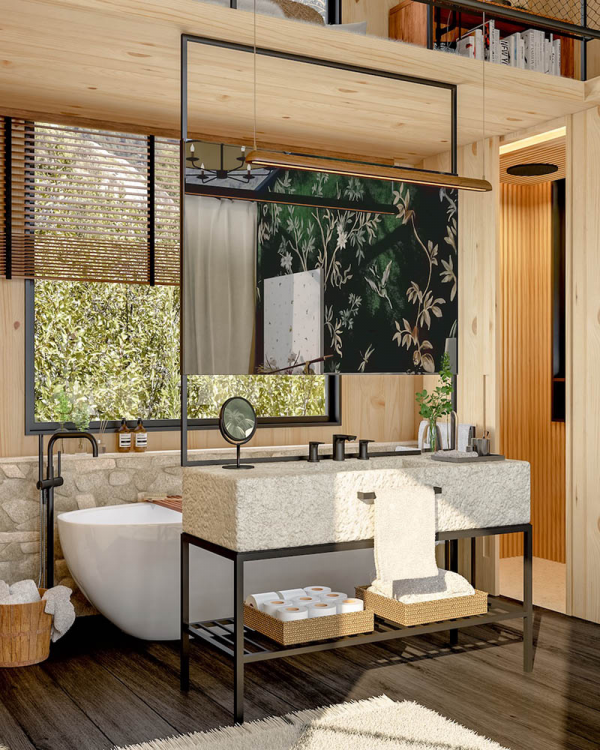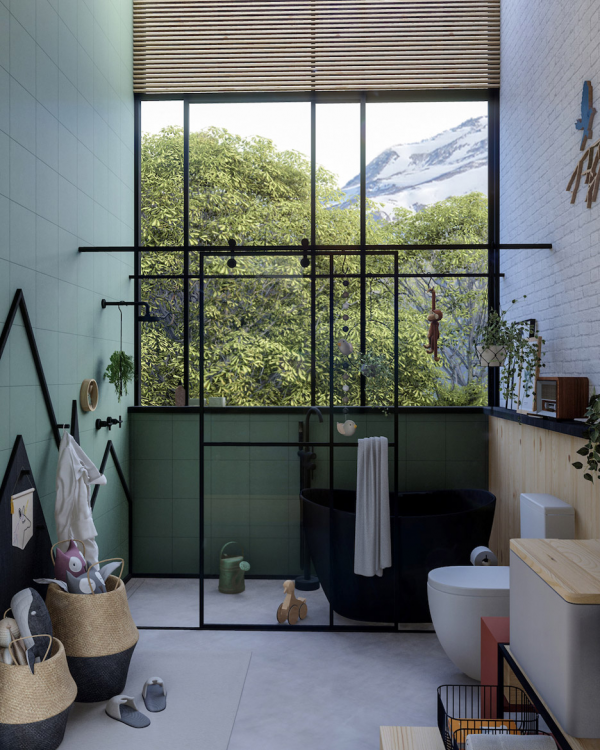 Kamar mandi dengan pemandangan alamnya.