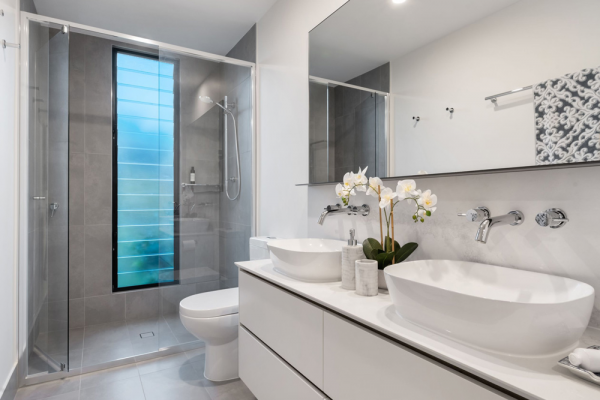 Keempat, gunakan dekorasi minimalist untuk menambahkan nilai estetika kamar mandi Anda.