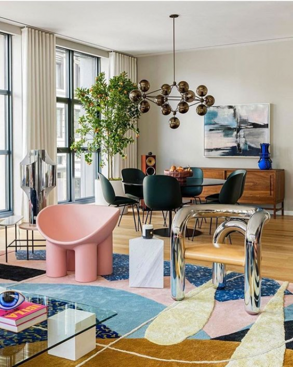 - Furnitur yang berani dan eksentrik adalah ciri khas dari desain interior rumah postmodern style. Furnitur dengan bentuk yang unik dan material yang tidak biasa dapat menjadi titik fokus ruangan dan menciptakan kesan yang dramatis.