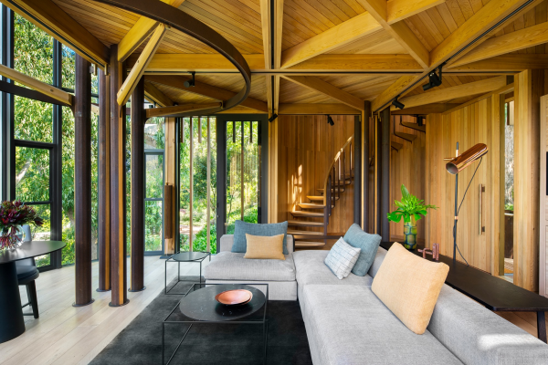 7. Desain rumah kayu dengan interior minimalis