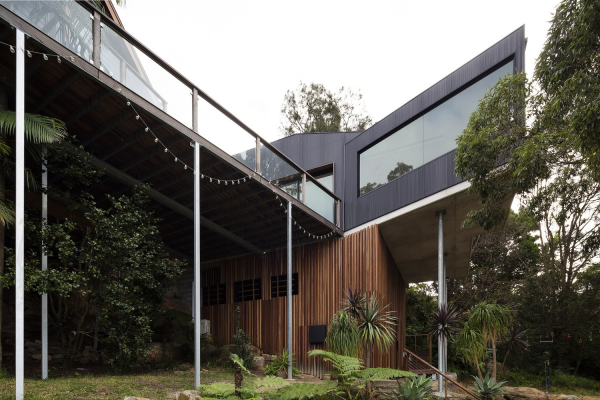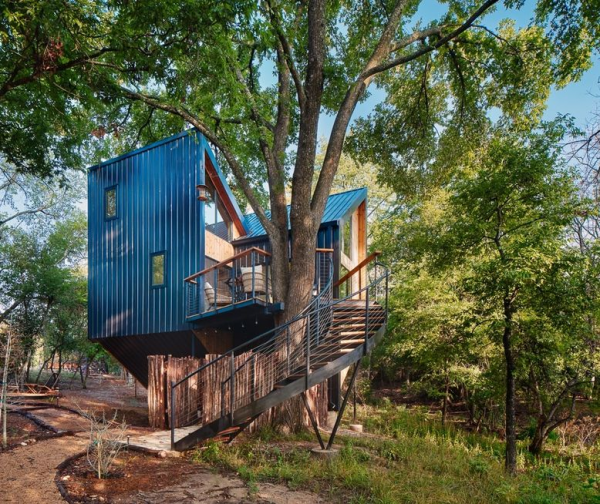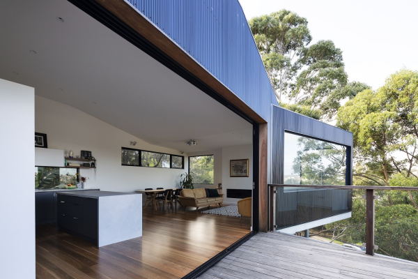 9. Desain rumah kayu dengan aksen logam