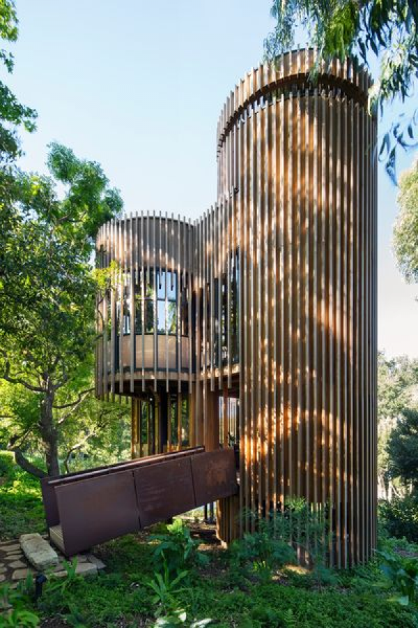 Rumah kayu modern yang unik ya moms.