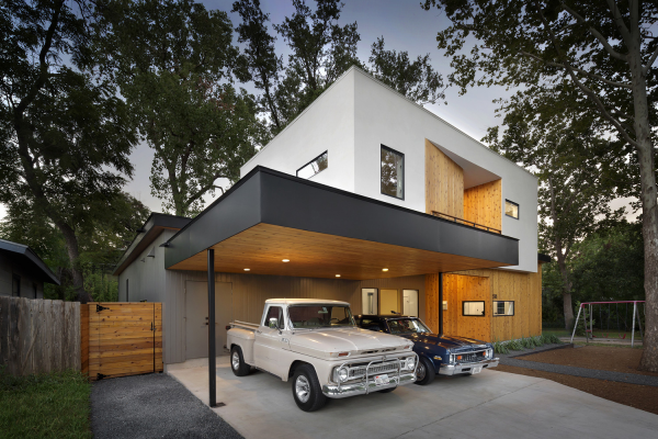 5. Desain rumah kayu dengan garasi minimalis
