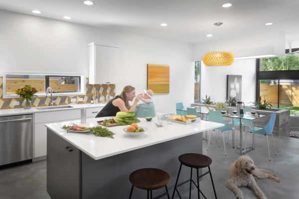 Interior dapur yang cantik dengan meja makannya.