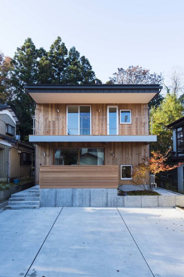 6. Desain rumah kayu dengan balkon minimalis