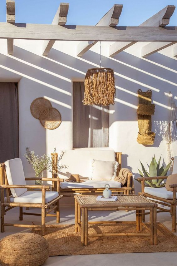 Furnitur alami ini biasanya digunakan untuk dekorasi ruangan atau area outdoor seperti patio atau deck. Furnitur alami seperti bambu atau rotan memberikan suasana yang nyaman dan hijau bagi penghuni rumah.