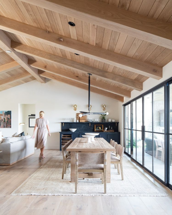 - - Penggunaan kayu: Kayu adalah bahan yang sering digunakan dalam desain interior rumah Eropa minimalis. Kayu dapat digunakan untuk lantai, dinding, langit-langit, dan furnitur. Pilih kayu dengan warna yang natural dan tidak dicat.