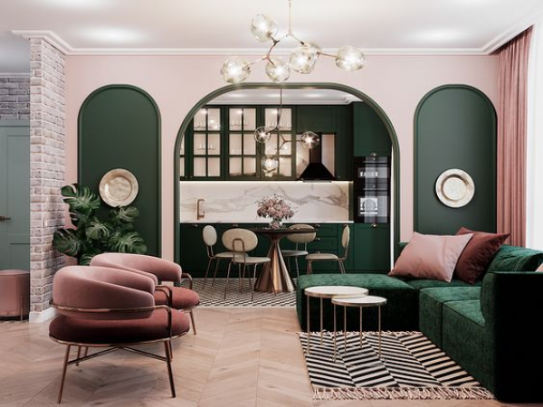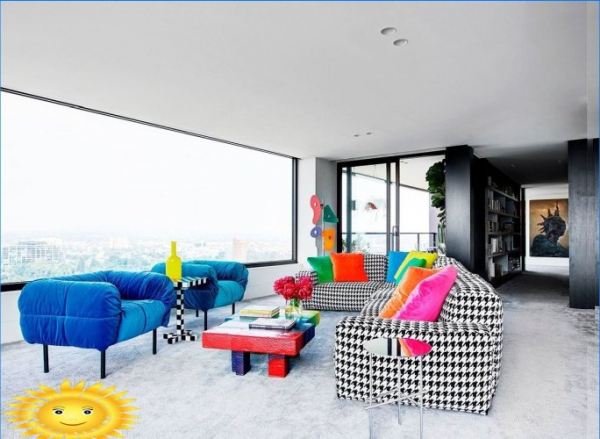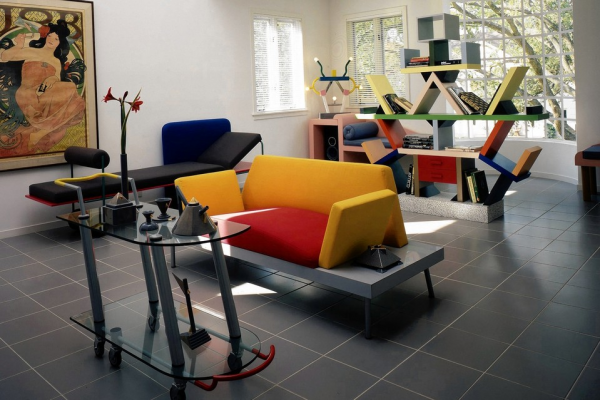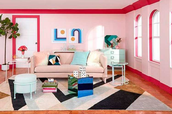 Interior rumah dengan gaya Memphis memiliki beberapa karakteristik utama, diantaranya: