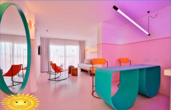 Kamar gaya memphis dengan tempat duduk unik nya.