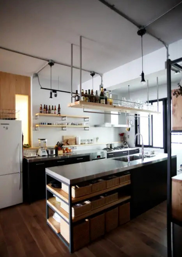 Salah satu ciri dapur tema industrial dengan konsep serba terbuka.