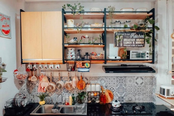 Cakep ya dapur tema industrialnya.