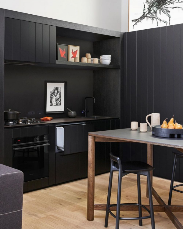 Walaupun didominasi warna hitam, dengan pencahayaan yang baik, dapur tetap menarik bukan.