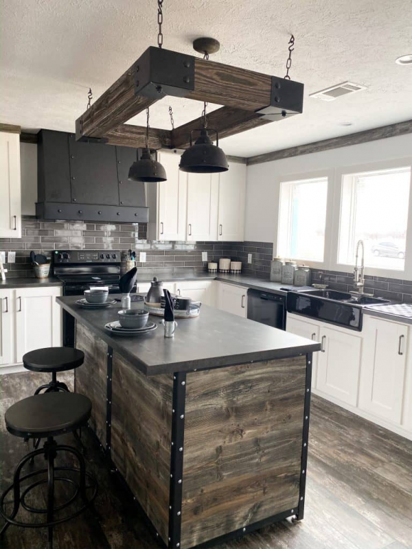 - Salah satu ciri khas desain dapur rumah industrial adalah penampilan pipa yang terlihat. Anda dapat membiarkan pipa-pipa tersebut terbuka dan menambahkan lampu gantung untuk memberikan kesan yang lebih dramatis.