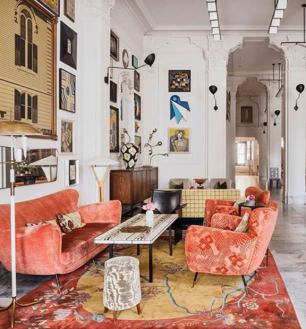 Menarik sih ini ruang tamu eklektiknya ya.