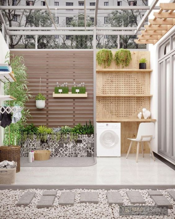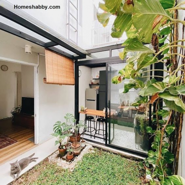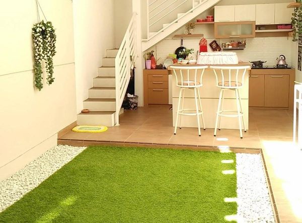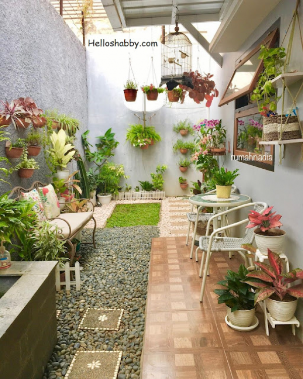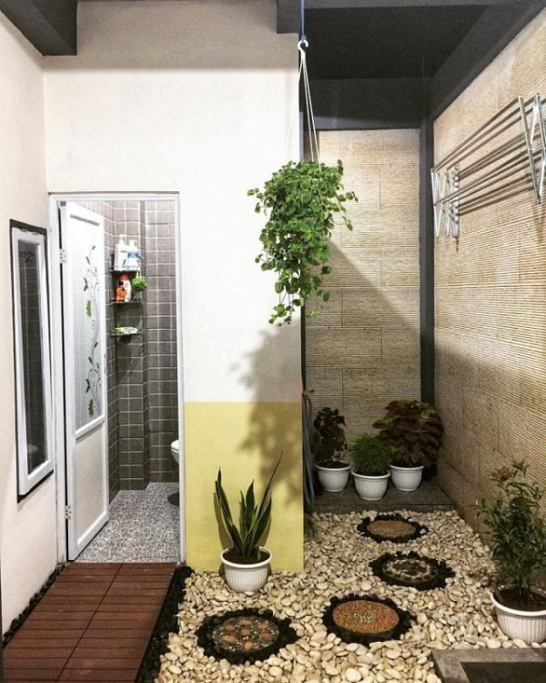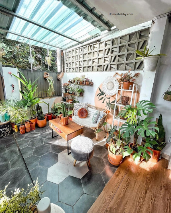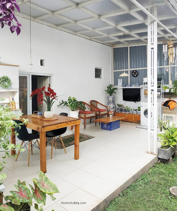 - - Teras dengan taman : Tambahkan taman di teras belakang rumah Anda untuk membuat suasana lebih hijau dan segar.