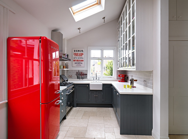 Suka dengan warna kulkas yang kontras dengan warna interior dapurnya.