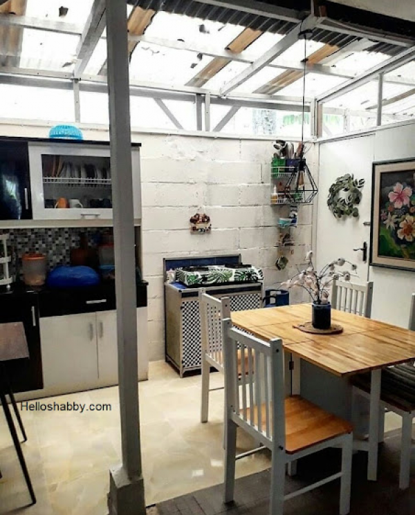 Keren ya moms atap dapur skyligth dengan tirai cantik nya.