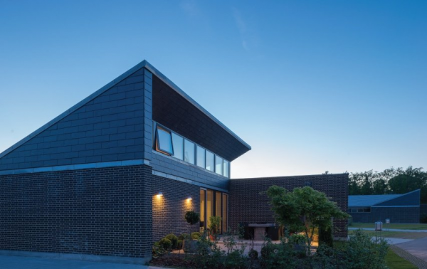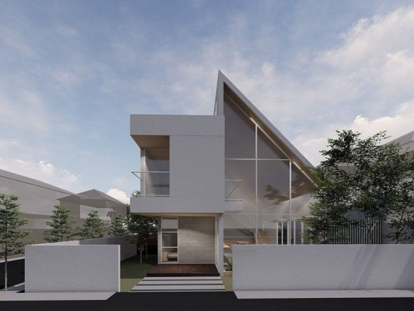 Rumah dengan atap miring satu sisi yang didesain beda arah.