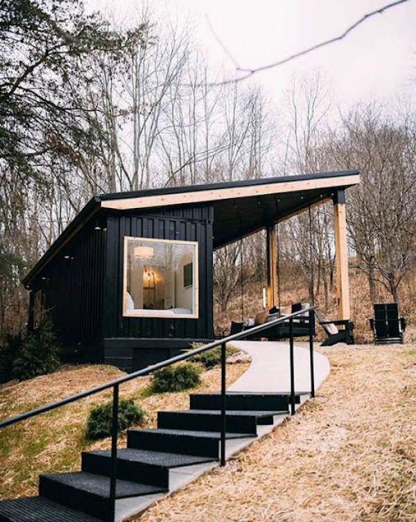 Masing dengan rumah ala kontainer dengan atap miring satu sisinya yang menarik.