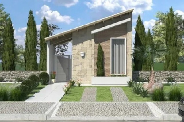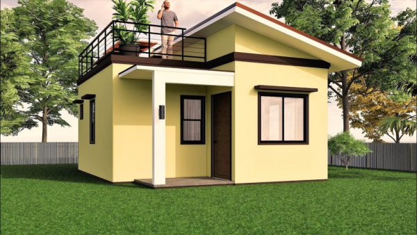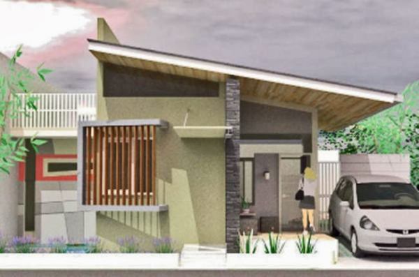 Rumah sederhana dengan kombinasi atap miring satu sisi dan satu sisi lainnya dicor yang berfungsi sebagai roof top.