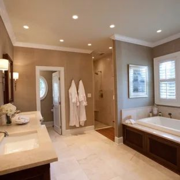 Desain interior British Colonial juga dapat diterapkan dalam kamar mandi untuk menciptakan tampilan yang elegan. Gunakan furnitur dengan bahan kayu yang tahan air, tambahkan cermin dengan bingkai kayu yang indah, dan pilih aksesori yang mencerminkan gaya British Colonial seperti keran air bergaya klasik.