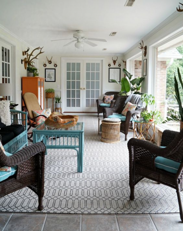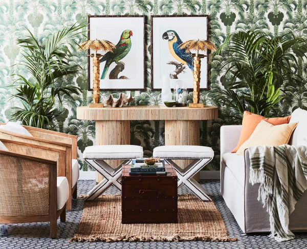 Material alami seperti kayu, bambu, rotan, anyaman, dan kain linen sering digunakan dalam furnitur dan aksesoris. Penggunaan material alami ini memberikan kesan hangat dan memberikan sentuhan tropis pada ruangan.