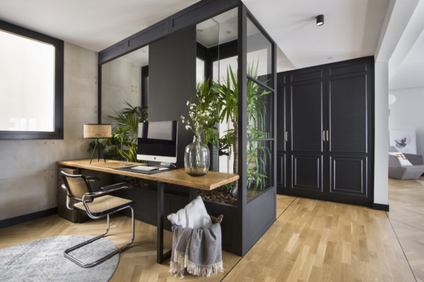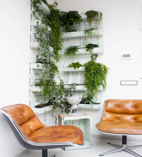 Ciptakan kebun vertikal di dinding dengan menempatkan rak-rak tanaman atau panel hijau yang tergantung. Ini akan memberikan tampilan yang spektakuler dan membuat ruangan terasa segar.