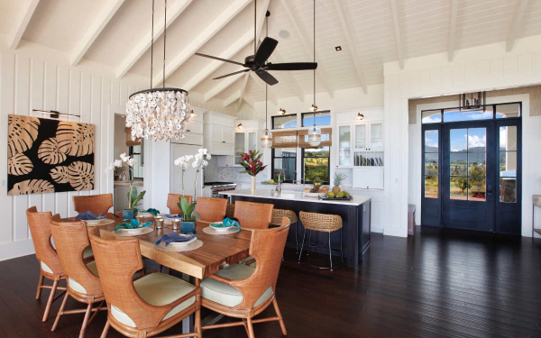 Interior dapur plantation dengan tanaman merambat yang cantik.