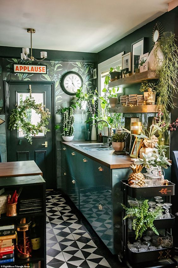 Tambahkan rak tanaman di dapur Anda untuk menyediakan tanaman herbal segar yang dapat digunakan dalam memasak. Selain memberikan tampilan yang indah, tanaman herbal ini juga praktis dan memberikan sentuhan alami pada ruangan.