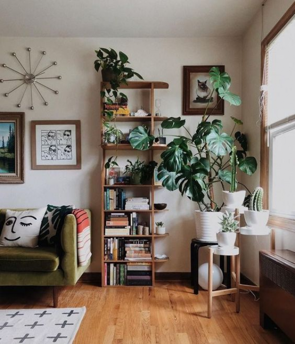 Ciptakan sudut hijau di ruang tamu dengan menempatkan tanaman-tanaman besar dan dedaunan yang lebat. Ini akan menciptakan suasana yang menenangkan dan memberikan tampilan yang mengagumkan.