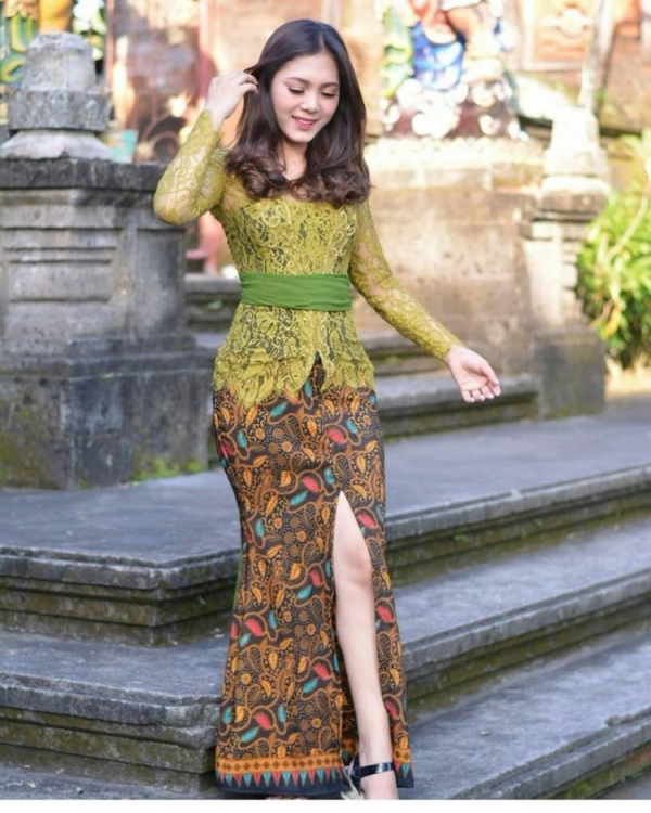 Kebaya modern dengan belahan yang tampil anggun.